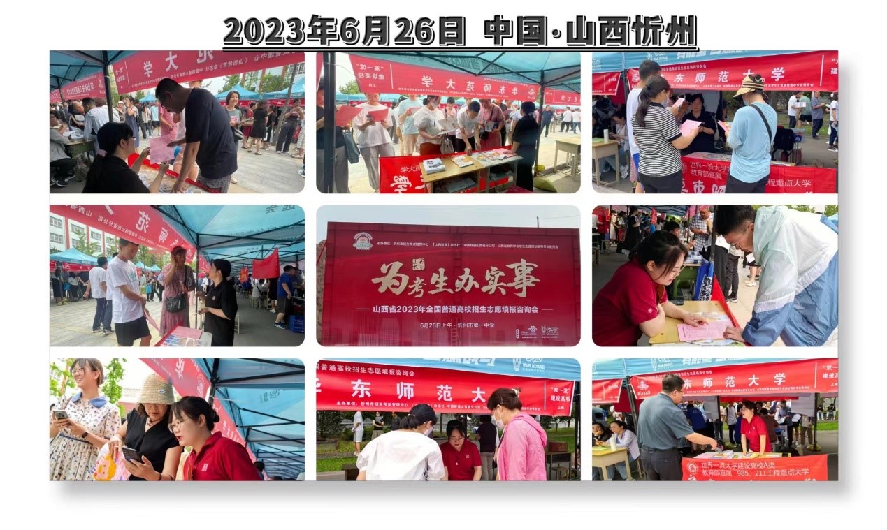 2023年6月25日-28日,秀人网 招生宣传工作小组一行10人由学院党远鸿书记,涂皘副书记带队,赴山西省太原、大同、忻州、运城、临汾、晋城、长治、平遥、太古、榆次等10个地市开设了15个咨询点进行线下招生宣传工作。