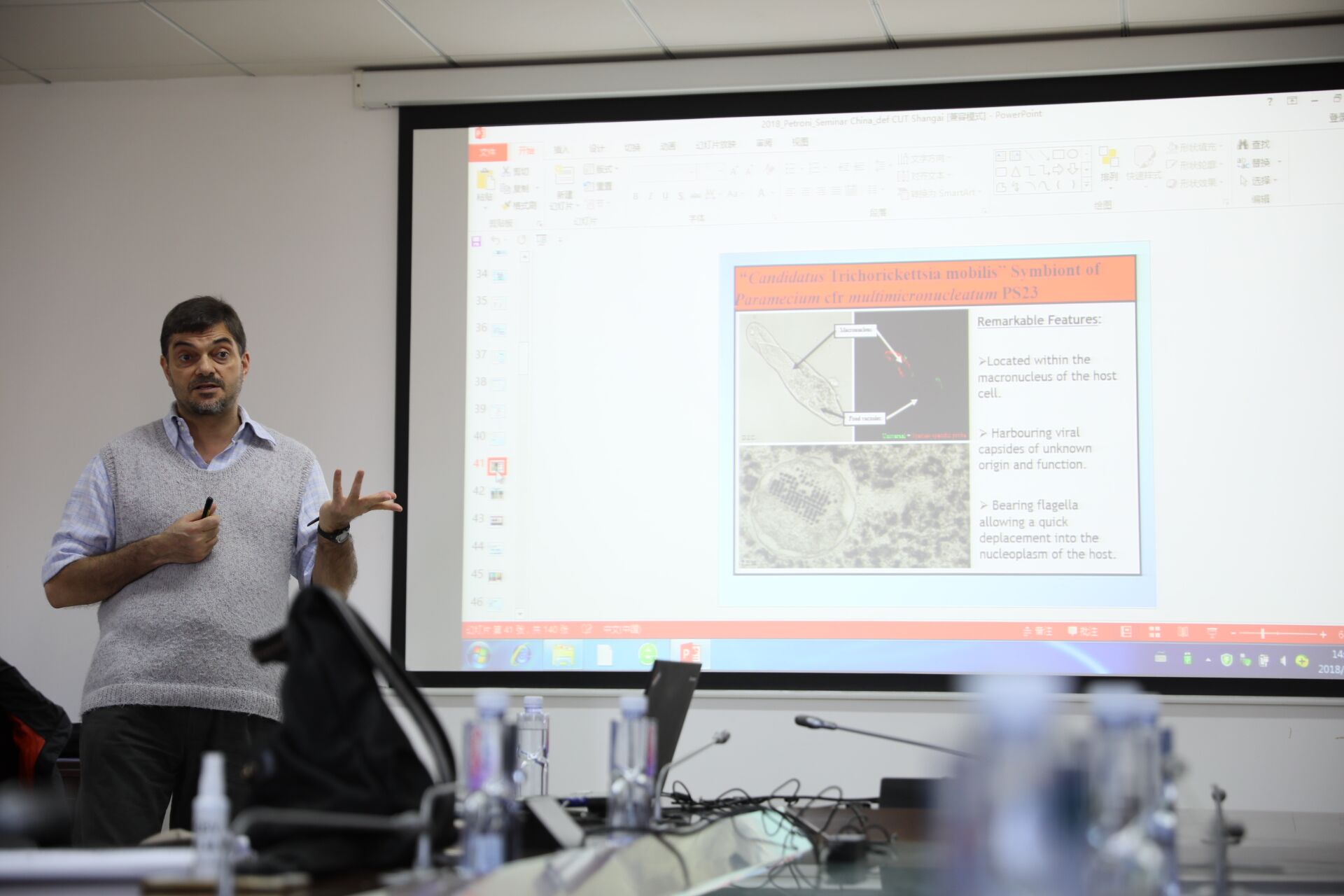 进行学术交流,并作了题为“Biodiversity of Bacterial Symbionts of Ciliates: state of the art and future trends”的专题讲座,受到了师生们的热烈欢迎。