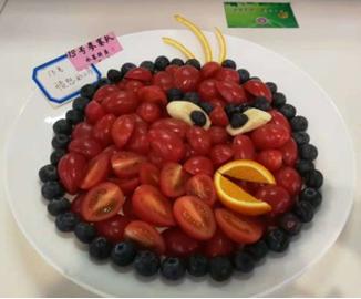 厨艺队4名队员配合默契、手脚麻利、动作规范、井然有序(图1)。在规定的一小时内完成了水果拼盘“愤怒的小鸟”、规定红案“鱼香肉丝”和自选红案“黄金脆脆虾”的制作。