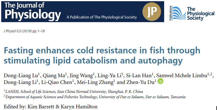 当前鱼类应对低温应激的研究很少从代谢角度开展,因此,本研究工作为该研究领域提供了新的研究思路。本工作中的诸多实验结果也可为鱼类遗传育种、功能性饲料研发和水产养殖技术提供有价值的参考。近日,本研究的相关论文《Fasting enhances cold resistance in fish through stimulating lipid catabolism and autophagy》已在生理学权威期刊The Journal of Physiology(IF5year = 4.78)上在线发表。