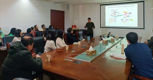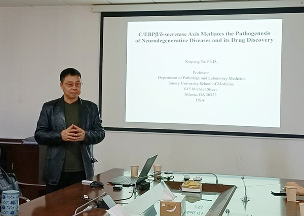 2020年12月9日,秀人网 李晓涛教授邀请美国埃默里大学叶克强教授进校访问,并做了题为“C/EBPb/d-Secretase Pathway Drives the Pathogenesis of Neurodegenerative diseases and its Drug Discovery”的学术讲座。秀人网 院长翁杰敏教授、阳怀宇教授、赖玉平教授、罗剑教授、李磊教授、金蕴韵副研究员、李纪文高级工程师等出席本次报告会。李晓涛教授实验室的研究生和本科生也旁听了本次报告。