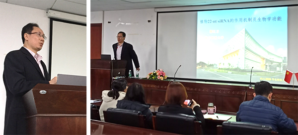 郭红卫老师通俗易懂地讲解使得同学们对植物siRNA的作用机制及生物学功能有了更全面的了解。随后,与会老师们及同学们积极提问,郭老师热情全面地进行了解答,现场学术气氛十分热烈,在场的师生受益匪浅。报告会后,郭老师又和植物学科的老师学生进行了深度的课题交流和指导,大家都收获良多。学科的青年研究员纷纷表示,此次郭老师之行让大家收获良多,不仅学习到了资深学者的研究及研究方法,更有助于对自身课题研究以及自身学术思维的拓展,同时也大大加深了郭老师对秀人网 和秀人网 的了解和认同,期待接下来有进一步的合作和指导。