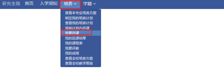 登陆公共数据库——研究生系统——我的学习 新(选课)——培养——我要选课