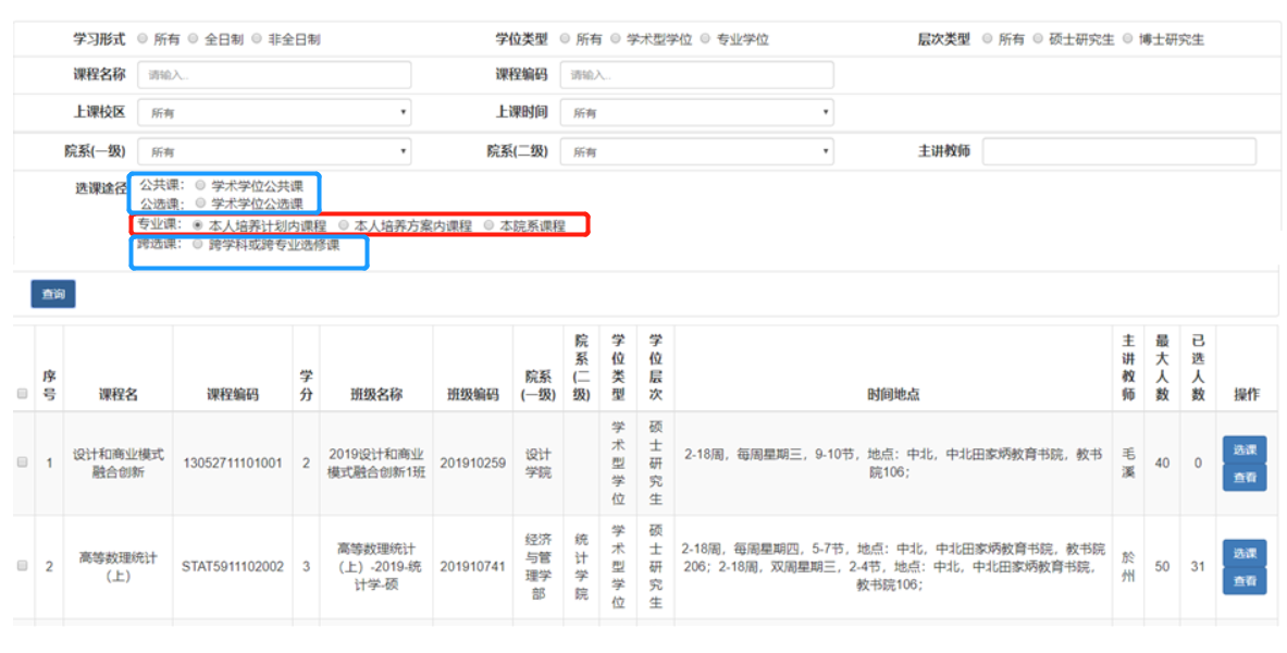 专业课在各院系研究生秘书指导下登陆研究生系统进行选课。
