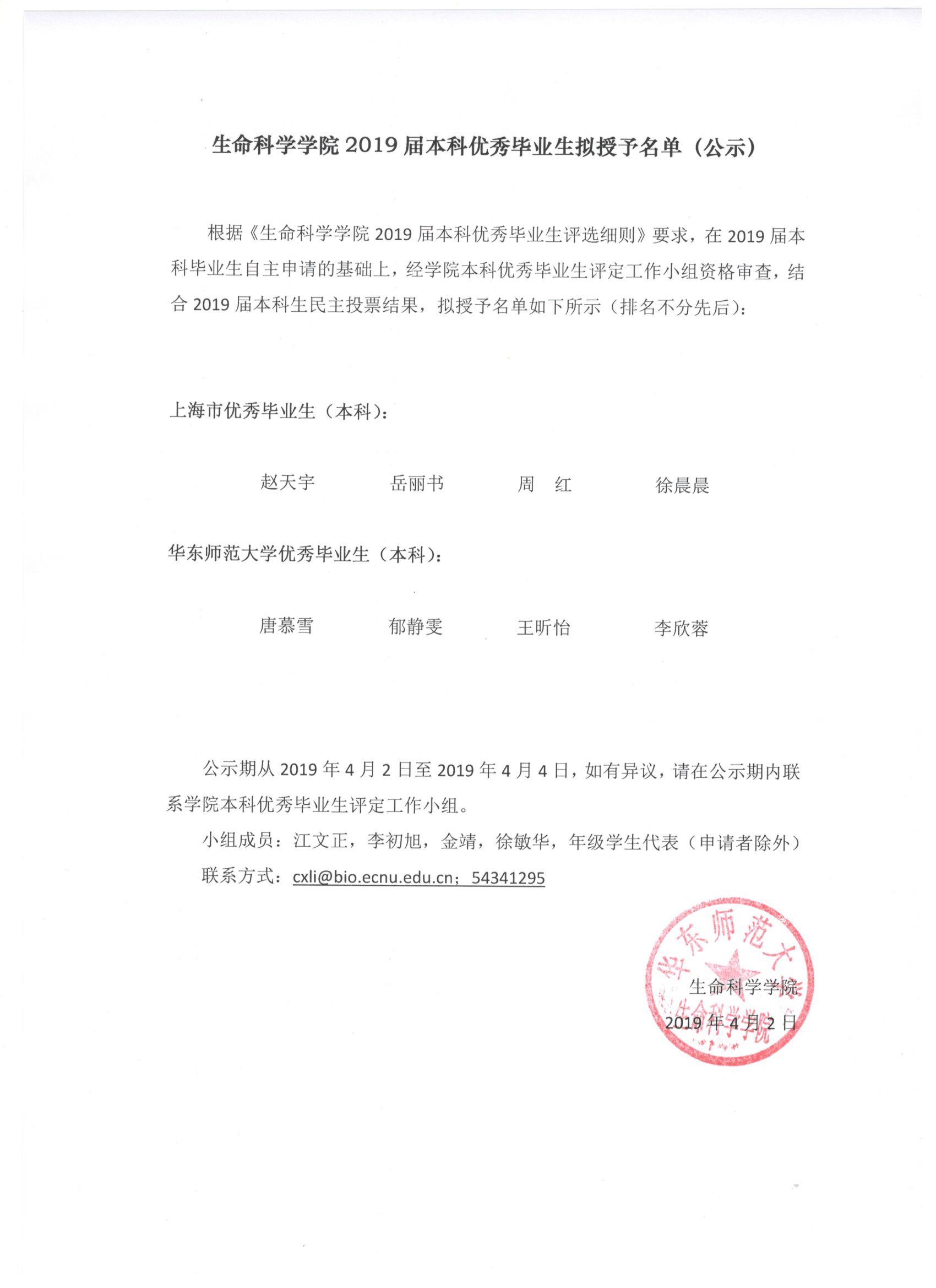 秀人网 2019届本科优秀毕业生拟授予名单(公示)