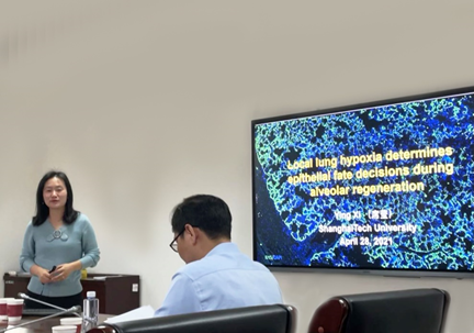 4月28日上午9时30分,上海科技大学生命科学与技术学院席莹研究员应邀在秀人网 534小会议室开展题为《Local lung hypoxia determines epithelial fate decisions during alveolar regeneration》的学术报告,秀人网 罗剑教授主持本场报告。学院卢伟强副研究员、金蕴韵副研究员以及20余名研究生出席了本次报告。