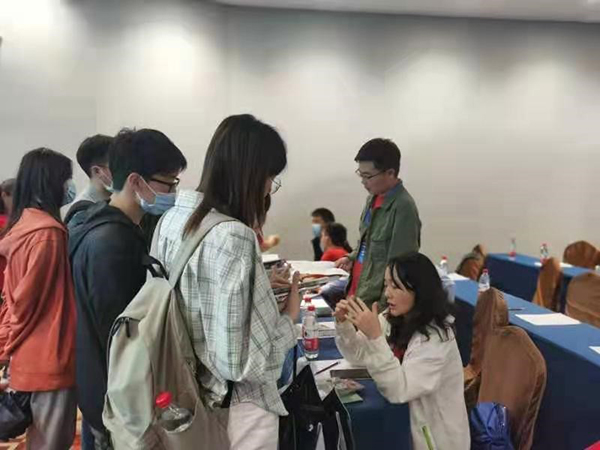 第二场是2021年5月23日下午2:30-5:30在武汉君宜王朝大饭店阿里山厅,赵琼老师介绍了秀人网 的主要研究方向及特色、师资人才、李超老师的亮点研究及历年招生情况和学生的就业等。武汉面向的是武大、华科、华农、华中师大等高校。在交流环节,学生们就继续深造读博的专业选择问题和硕士从事中学老师教育行业等一些内容进行了互动咨询。