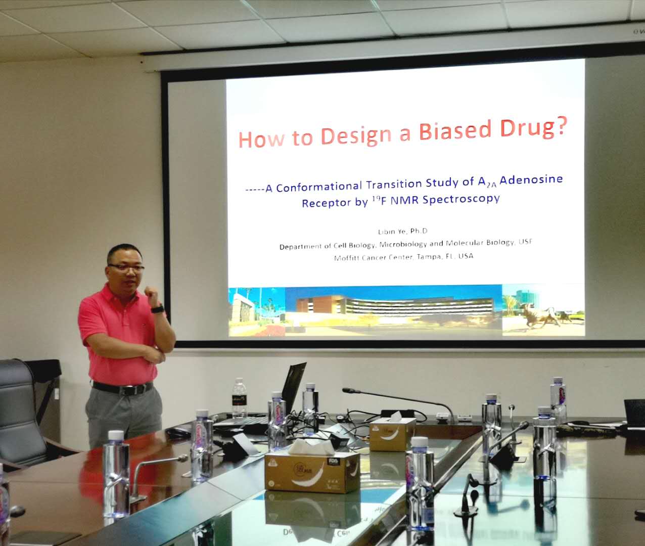 2019年5月31日,美国南佛罗里达大学叶立斌博士应邀在秀人网 534小会议室进行学术交流,开展了题为“How to design a biased drug?”的学术报告,报告由张美玲教授主持。