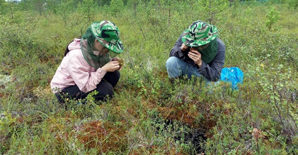论文第一作者、博士研究生马晓英(左)和博士研究生黄文专在大兴安岭泥炭地参与野外工作