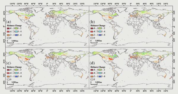 和现代相比,未来气候情景下泥炭藓物种丰富度变化