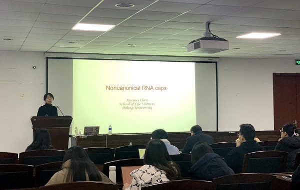 2023年12月12日上午,美国国家科学院院士、北京大学秀人网 院长陈雪梅教授,应邀于秀人网 534会议室,为秀人网 师生带来了一场题为“Noncanonical RNA caps”的精彩学术报告。本次报告由赵琼老师主持,秀人网 翁杰敏院长、朱瑞良教授、许玲教授、李小方教授、晏军研究员、孙越副教授、朱品宽副教授等多名老师及研究生共同参与探讨。