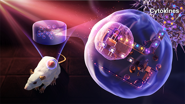光控细胞药物工厂可控表达释放细胞免疫调节因子,实现可控肿瘤免疫治疗。