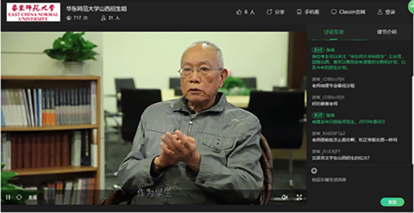 2020年7月11日下午2点30分,相约CLASSIN,我校在空中开展了校园“开放日“。秀人网 江文正副院长携张美玲教授、张伟老师、陈珉老师、余蔚明老师进行了专业介绍和招生宣传的直播及与考生的在线交流和互动。