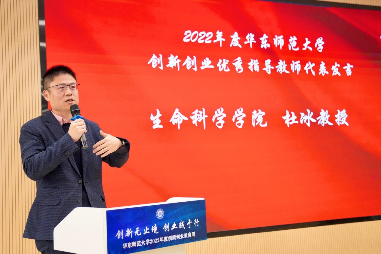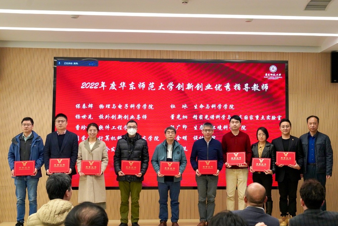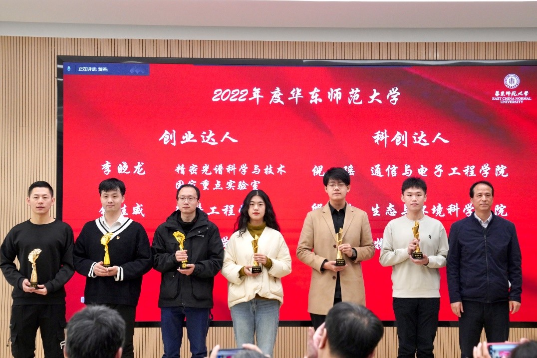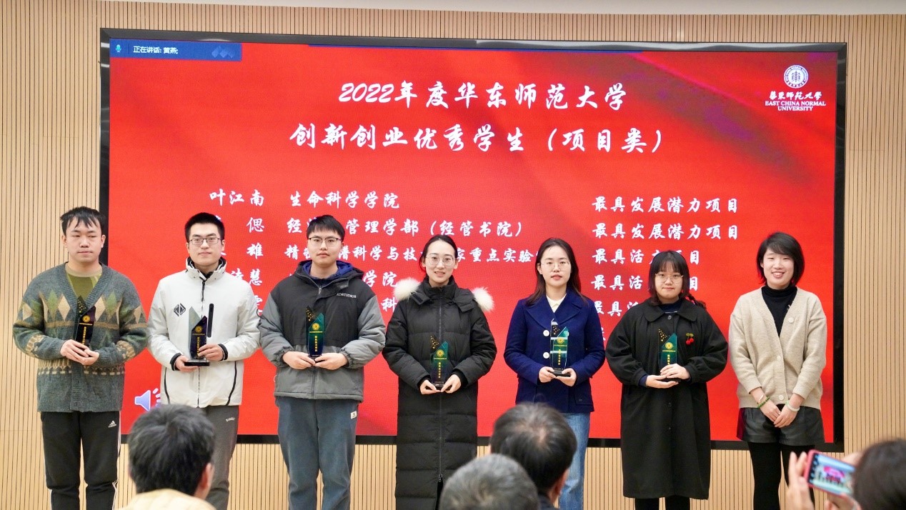 杜冰荣获“2022年度华东师大创新创业优秀指导教师”称号;刘小红获评“2022年度秀人网 创业达人”;叶江南携“饵食饲安——无抗养殖引领者”项目获评“2022年度秀人网 最具发展潜力项目”;沈诗慧携项目“S2Y85S1——靶向REGγ-20S蛋白酶体的新型抗肿瘤药物”获评“2022年度秀人网 最具活力项目”。