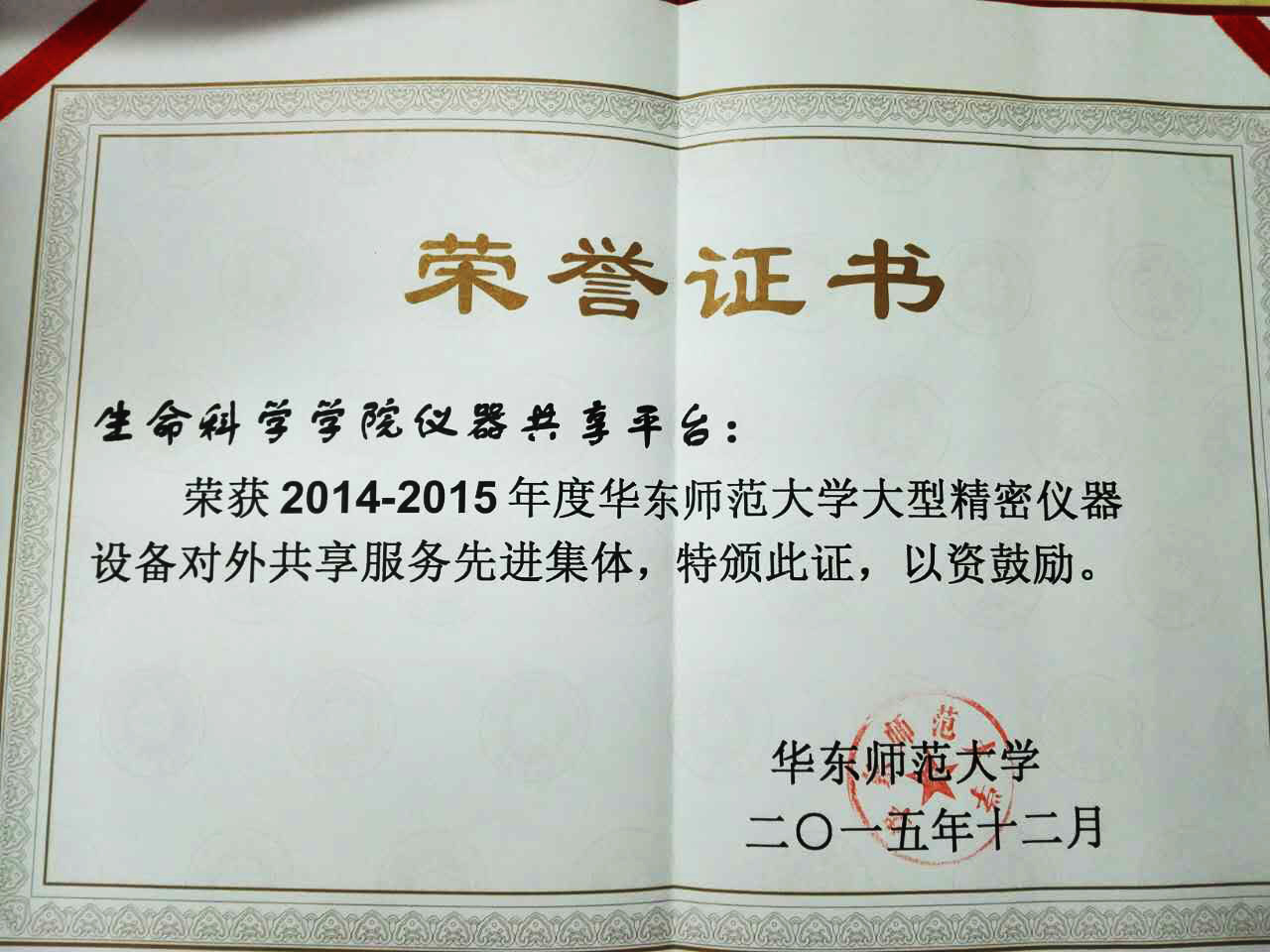 秀人网 仪器共享平台荣获2014-2015年度秀人网 大型精密仪器设备对外共享服务先进集体