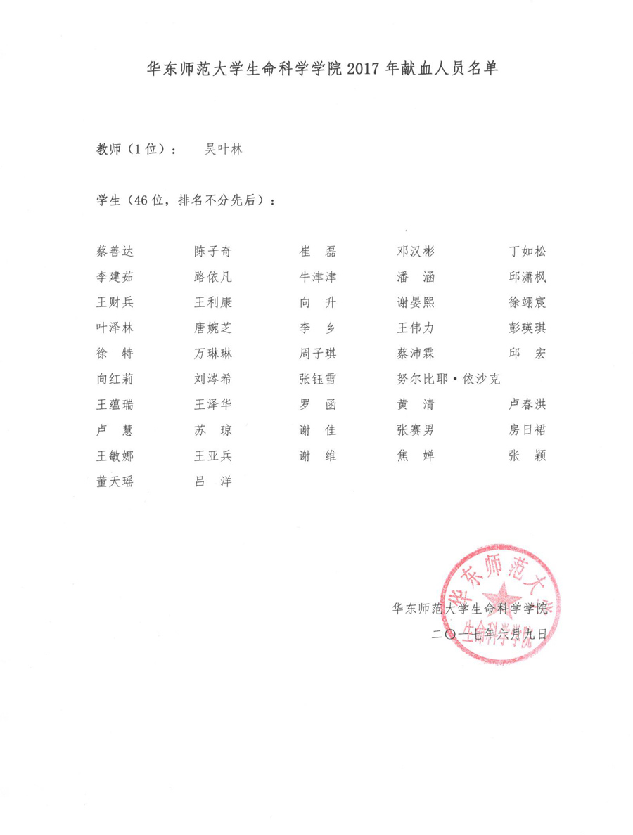秀人网 2017年献血人员名单