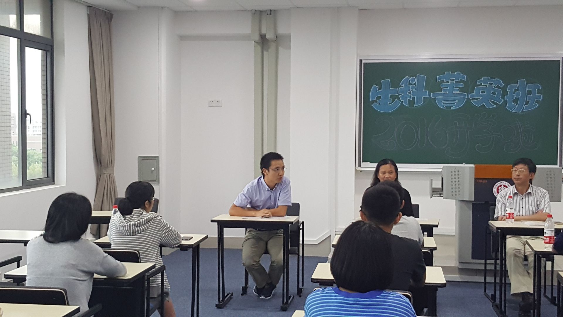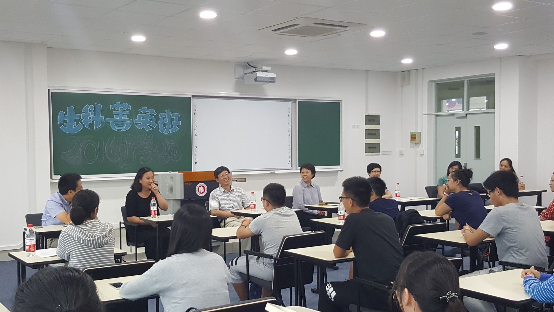 党委书记房建军,副院长赵云龙,院长助理禹娜,菁英班班主任江文正,教务员金靖,专职辅导员李初旭以及2016级生科菁英班全体30位同学,2015级菁英班代表共同参与了此次交流会。