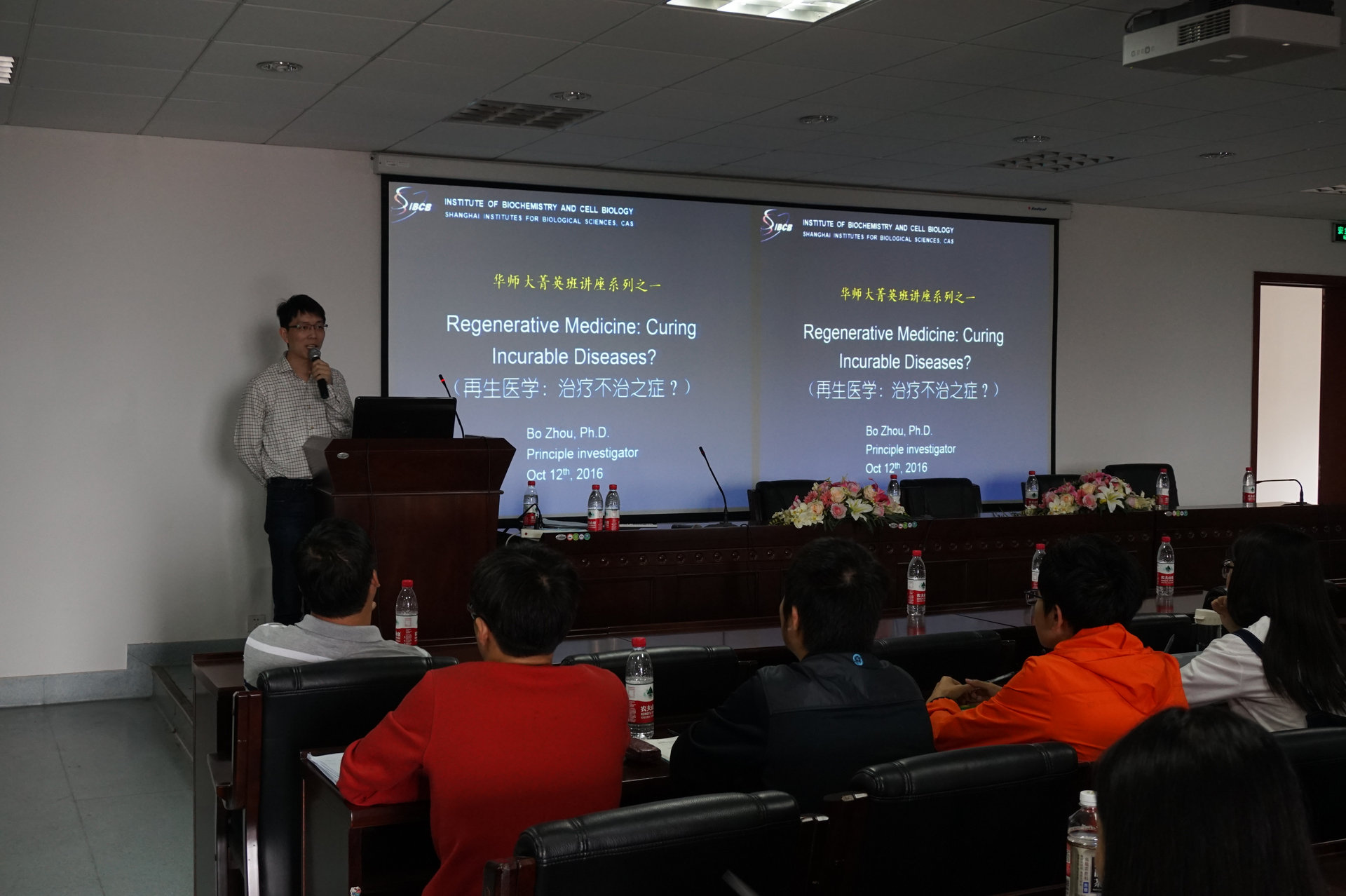 2015级、2016级本科菁英班本学期“第一次师生座谈会”在生科楼534会议室顺利召开。此次座谈会非常荣幸地邀请到中国科学院上海生命科学研究院生物化学与细胞生物学研究所周波教授为学生们做学术讲座。校教务处谭红岩老师,秀人网