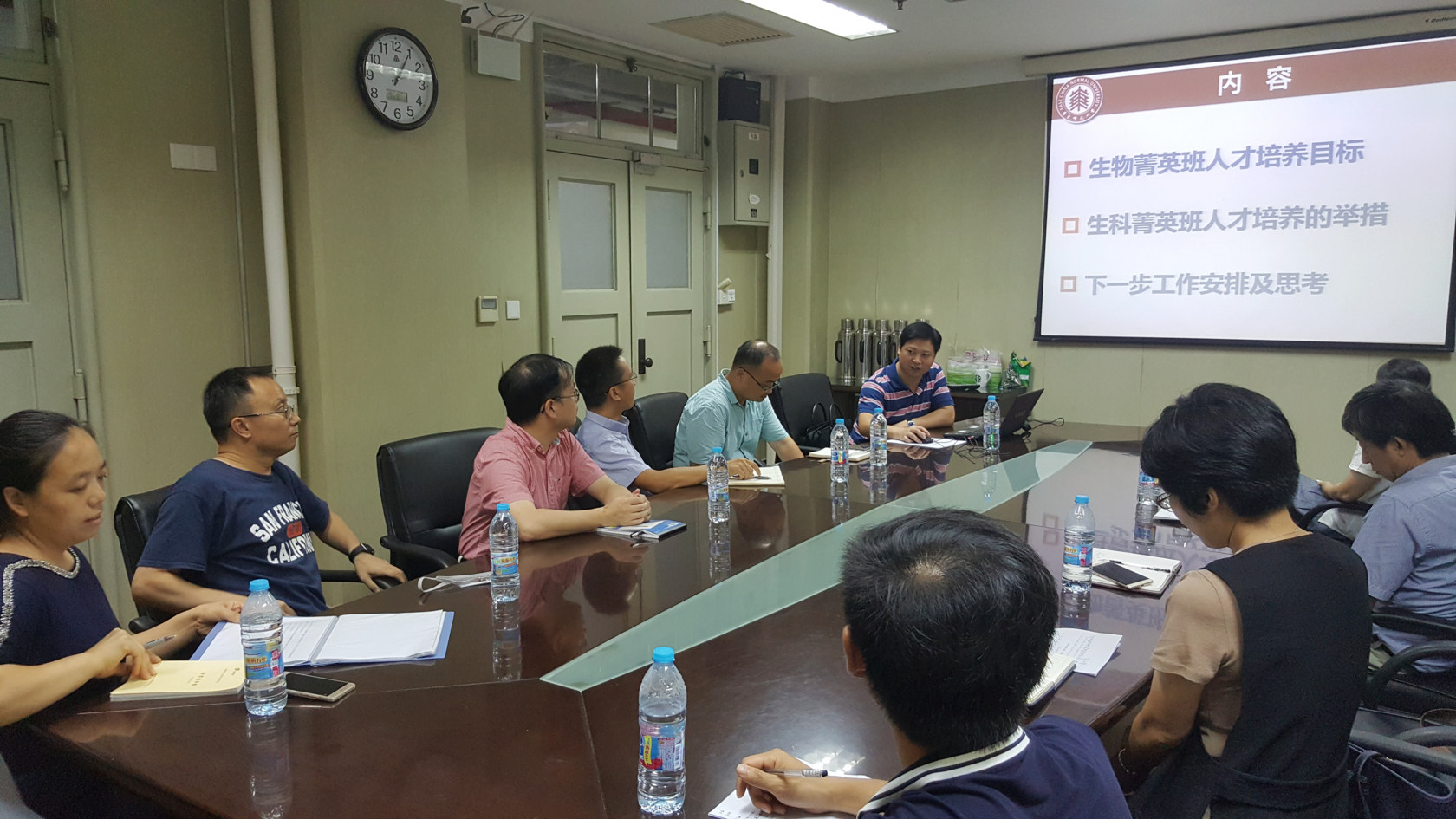 之后,双方针对下一阶段菁英班的工作计划与落实细节展开讨论,重点讨论问题包括:菁英班学生大三步入科研探索阶段后,两校间实验室实习的相关住宿、交通安全等问题;菁英班学生选修中科院课程和相关的学分转换以及研究生阶段免修问题;生科院与中科院共建课程的教学安排与讨论课设置问题;菁英班荣誉课程的教材选择与教材编纂问题等。围绕以上师生较为关注的多个热点问题,双方根据自身实际情况互通有无,多个问题上基本达成了共识,少部分问题尤其是涉及学生安全的相关问题,双方后续会进行针对性讨论并进一步沟通。