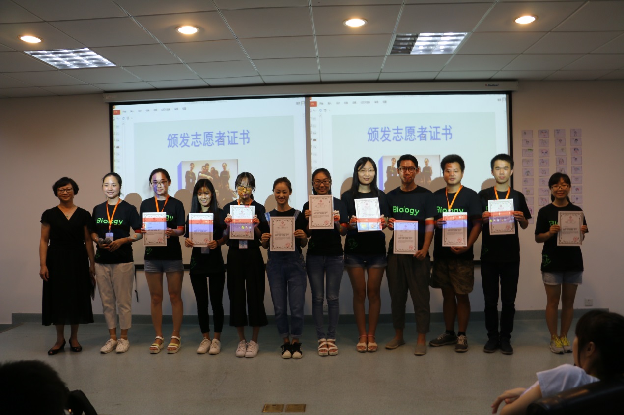 8月24日8:30,夏令营闭营仪式在生科院534报告厅正式开始,副院长钱旻教授、赖玉平教授、易正芳教授、院长助理孙越老师及研究生教务赵娟老师出席。闭营仪式充满感动和感激,营员们真情流露依依不舍,志愿者们分享时更是几度哽咽。营员们表示“这是最用心的夏令营,也是最留人心的夏令营”,“今天的闭营仪式像是新生毕业典礼”,“希望明年九月再聚华师大”;志愿者们表示“作为志愿者参加夏令营活动学习到了很多科研之外的知识”,“研究生生活时刻充满惊喜与挑战”。紧接着,院长助理孙越老师为营员颁发了“最佳人气奖”、“最具潜力奖”、“最佳表现奖”及“最佳团队奖”,钱旻副院长为每一位顺利通过的营员颁发了结业证书与预录取函,并殷切希望营员们能到秀人网