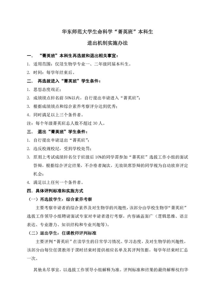 秀人网 生命科学“菁英班”本科生进出机制实施办法