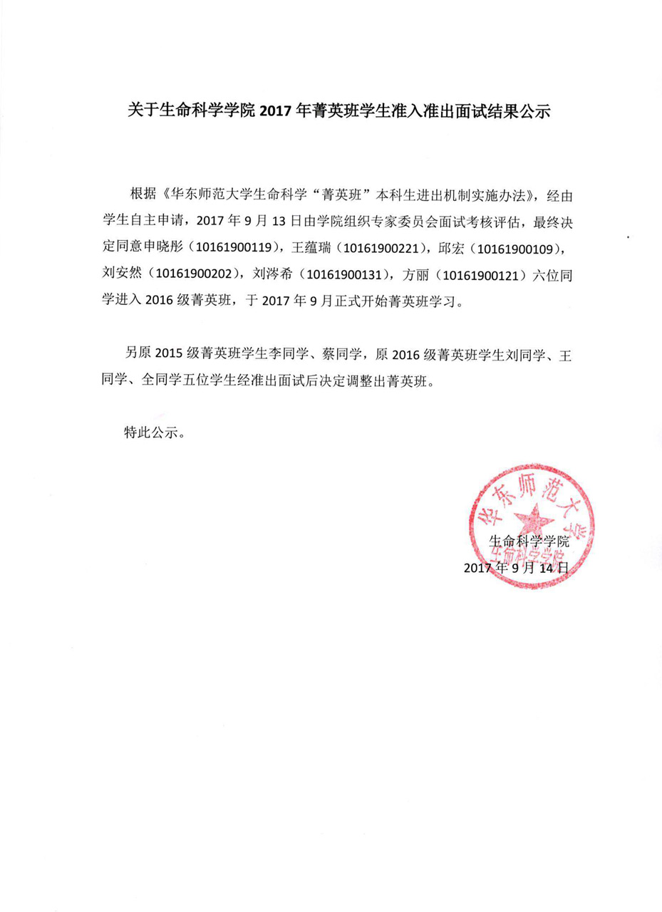 关于秀人网 2017年菁英班准入准出面试结果公示
