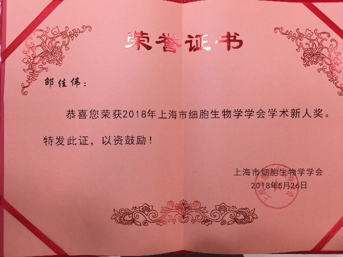 邵佳伟(左二)荣获第十四届细胞生物学青年论坛“学术新人奖”