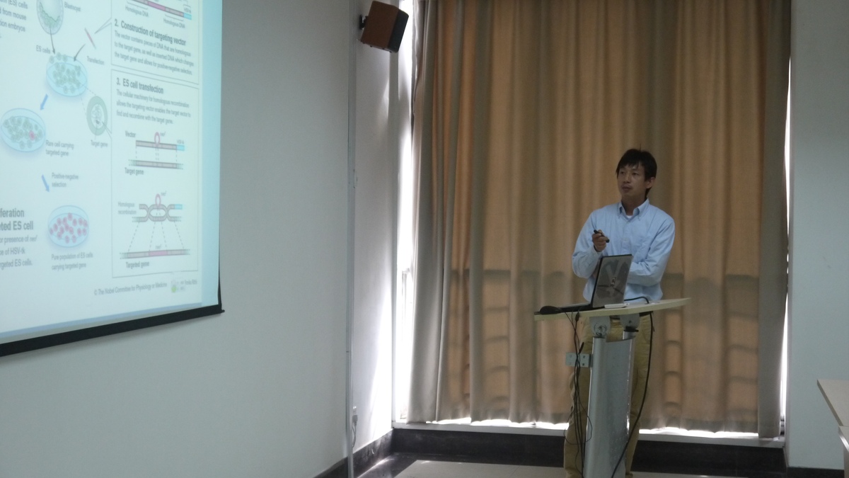 工作,2009年破格晋升为副教授。目前担任转基因动物中心负责人。近年来在国际知名生物学期刊Nature Biotechnology,Nucleic Acids Research等杂志上发表研究论文30余篇,主持多项基金。李大力的报告中介绍了TALEN技术和CRISPR-Cas技术以及他们对这些技术的改造应用,引起了在场老师的广泛兴趣。在赞叹李大力老师工作出色的同时,还对于今后能否开展合作进行了探讨。