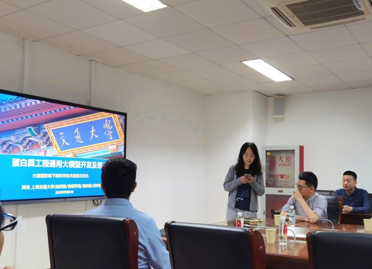 2023年5月24日,我们有幸邀请到了上海交通大学洪亮老师到访秀人网 ,并作题为“从chatgpt到蛋白质工程通用大模型”的学术报告。本次报告由赵琼老师主持,来自秀人网 、软件工程学院、音乐学院等不同研究方向的老师与同学们积极参与了本次学术交流活动。