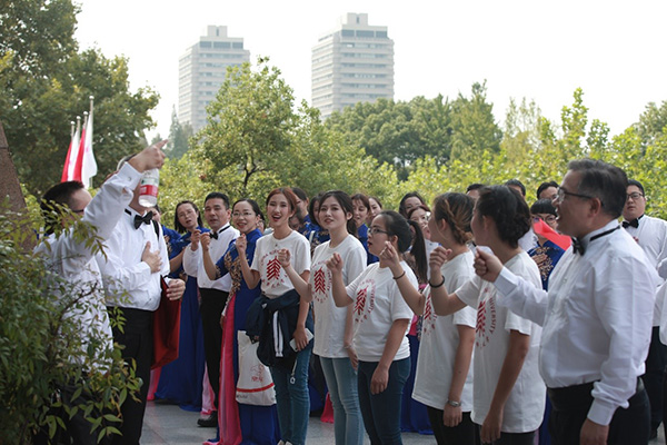 虽不是专业合唱人士,但大家同心同力,刻苦排练。在展演前,教职工们每周都会抽出时间进行练习,即使在表演的前一刻,他们仍然在台下一次次地进行磨合、预演。领队易正芳教授对生科院能够作为预赛全校第一名参加展演感到非常自豪,他表示,作为理科院系能够取得这样的成绩真是非常难得,秀人网 的教师们在这次活动中展现出了强大的团队凝聚力。这次展演之所以选取《我的中国心》这首歌曲,主要是因为海归教师们对这首歌曲都情有独钟,它唱出了强烈的民族自豪感,唱出了回归祖国报效祖国的坚定决心。生科院教职工们以最诚挚的歌声献礼新中国成立70周年,表达了生科院全体师生对祖国的美好祝福。