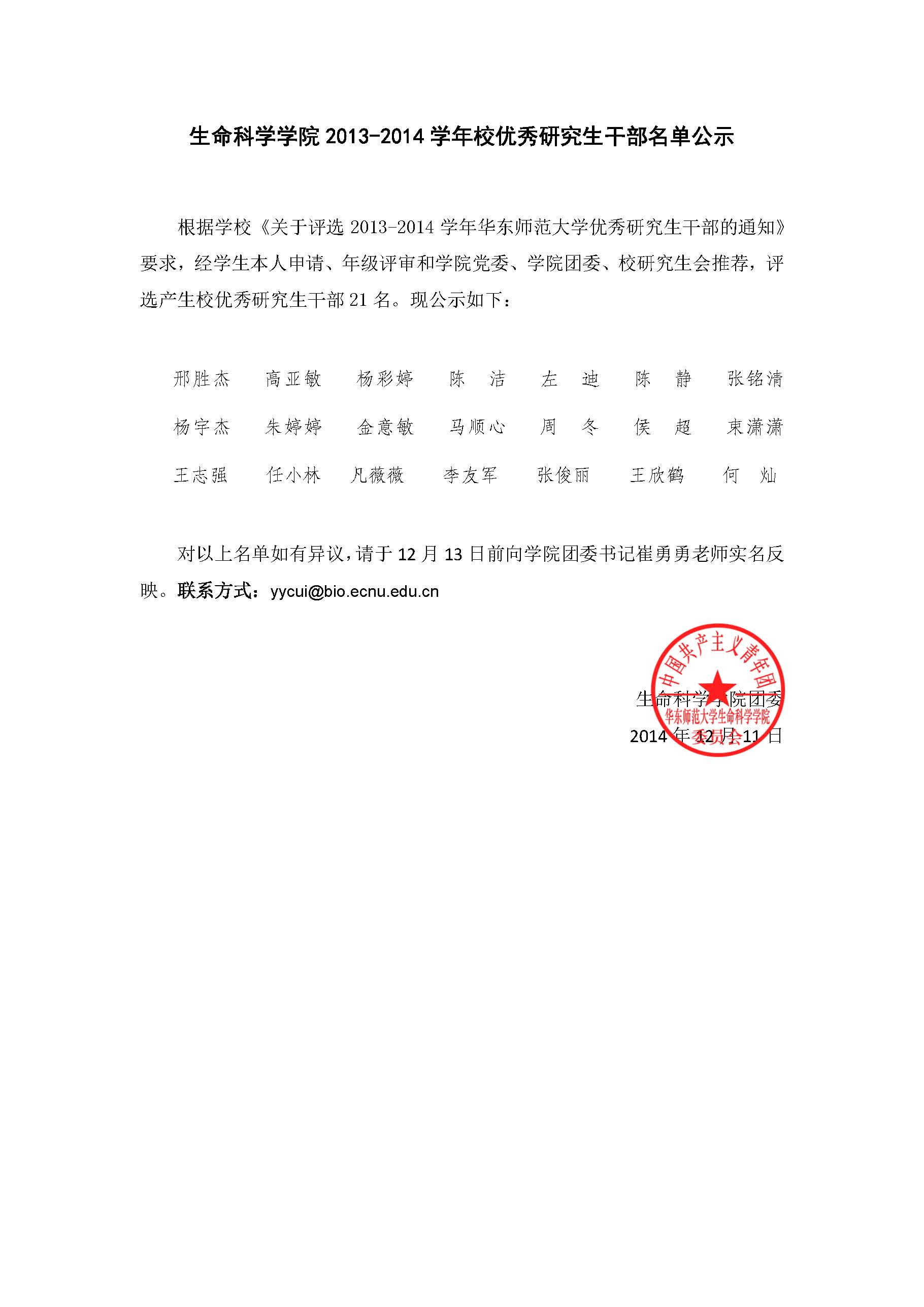 秀人网 2013-2014学年校优秀研究生干部名单公示