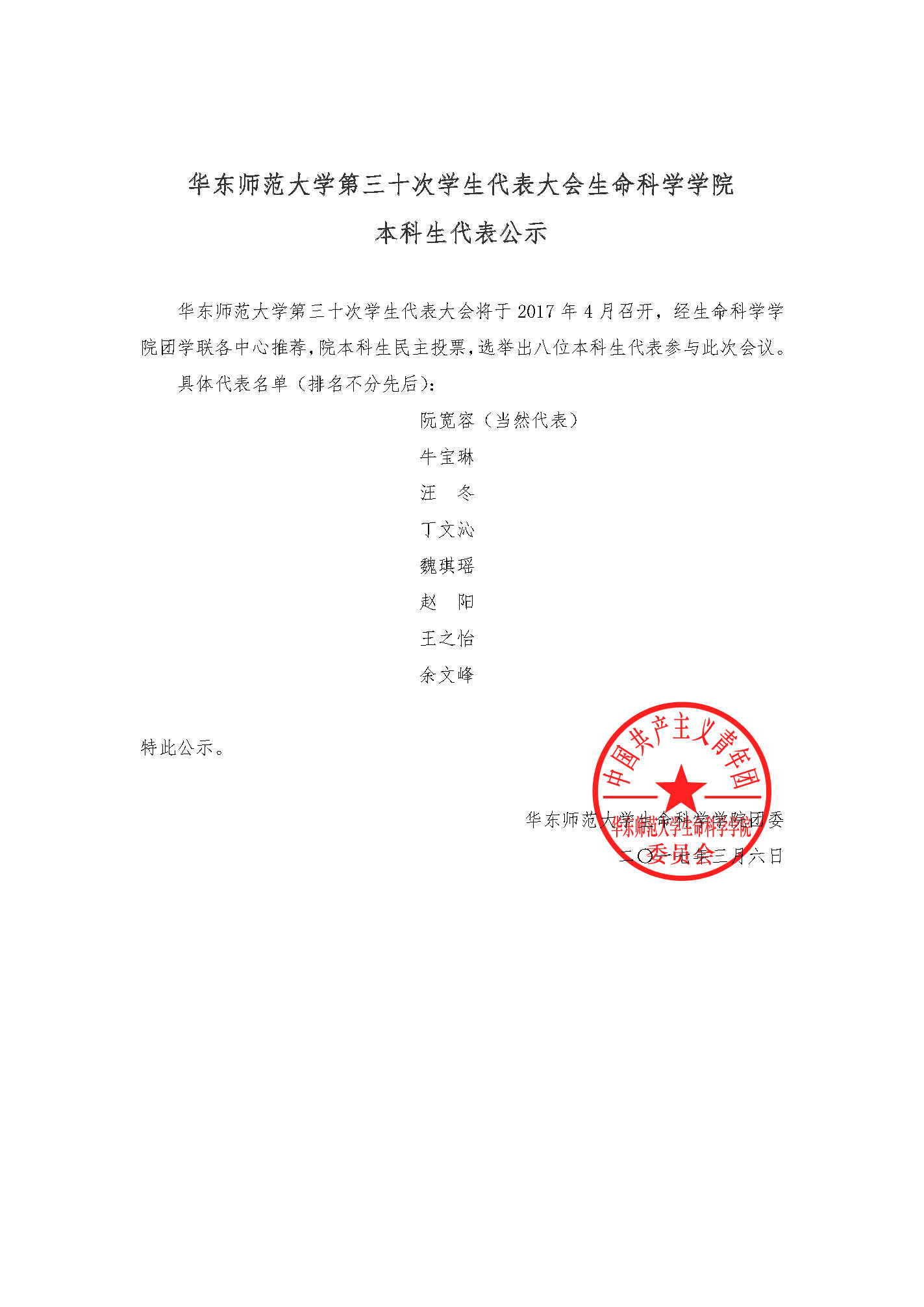 秀人网 第三十次学生代表大会秀人网 本科生代表公示