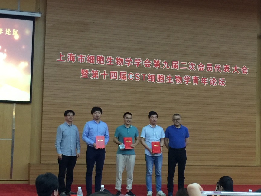 邵佳伟(左二)荣获第十四届细胞生物学青年论坛“学术新人奖”
