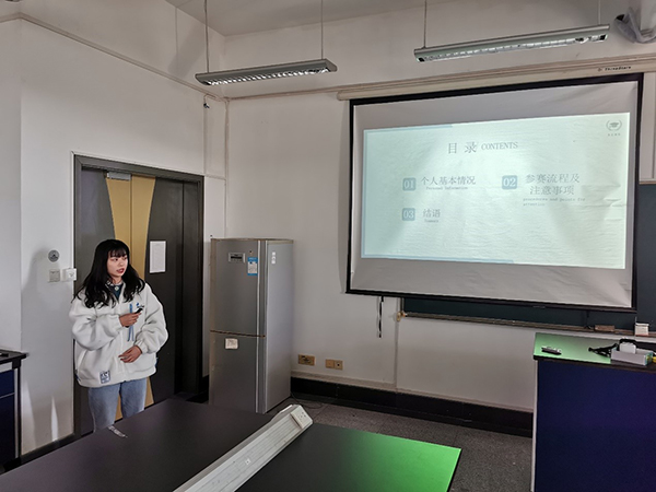 张颖学姐参与了去年的生命科学竞赛,并获得了上海赛区特等奖,入围国赛。她首先进行了简要的自我介绍,之后她重点进行了经验分享。她为同学们梳理了今年生命科学竞赛的参赛时间线,之后从实验设计与研究综述上传开始讲解,她强调研究综述要聚焦于近五年的文献,并且要多引用国际高水平期刊上的英文文献,要注意实验设计与研究综述的科学性与严谨性。沿着竞赛的时间线,学姐详细讲解了参赛缴费,实验记录上传,竞赛论文与研究心得上传,并就细节问题进行说明。她强调要注意时间节点,留足时间上传材料,不要等截止日期的最后一天再上传;要注意字数限制,不要超过最低字数,以免扣分;要注意不要泄露参赛者,指导教师,学校等信息,以免因为信息泄露而零分。她勉励同学们,大三是参加科研的最好时机,不要因为之前没有参加而感到担忧,只要好好努力,一定能有好的收获。
