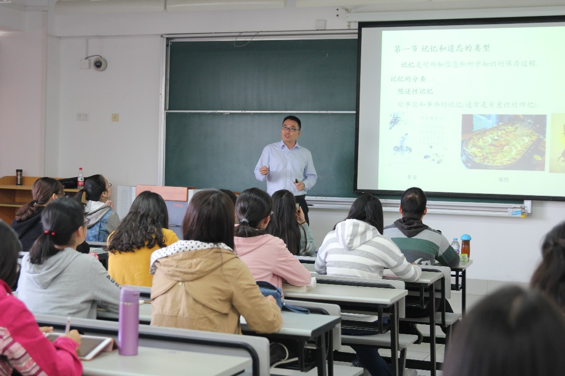 俞老师从记忆和遗忘的概念出发,介绍其类型、发生机制,并结合实际生活中的现象进行了生动的讲解。同学们对其内容非常感兴趣,与老师进行了非常好的互动。
