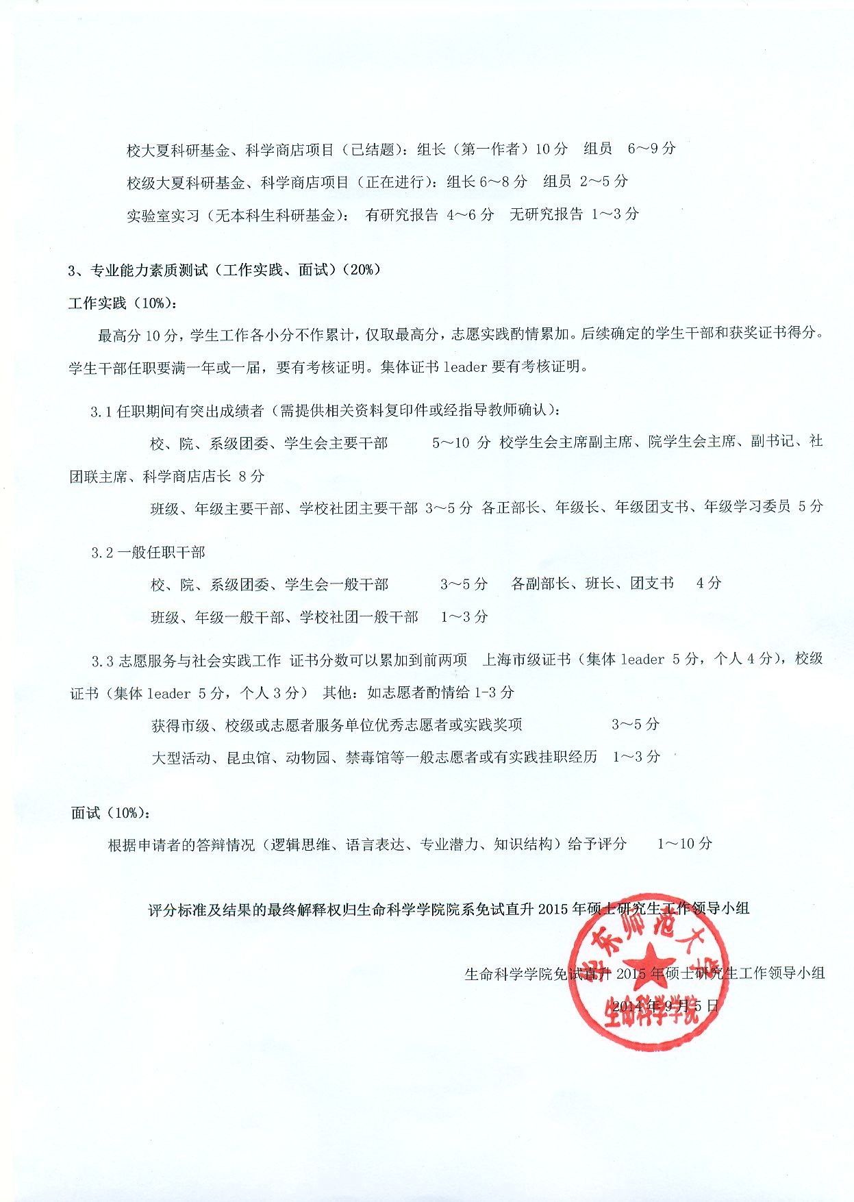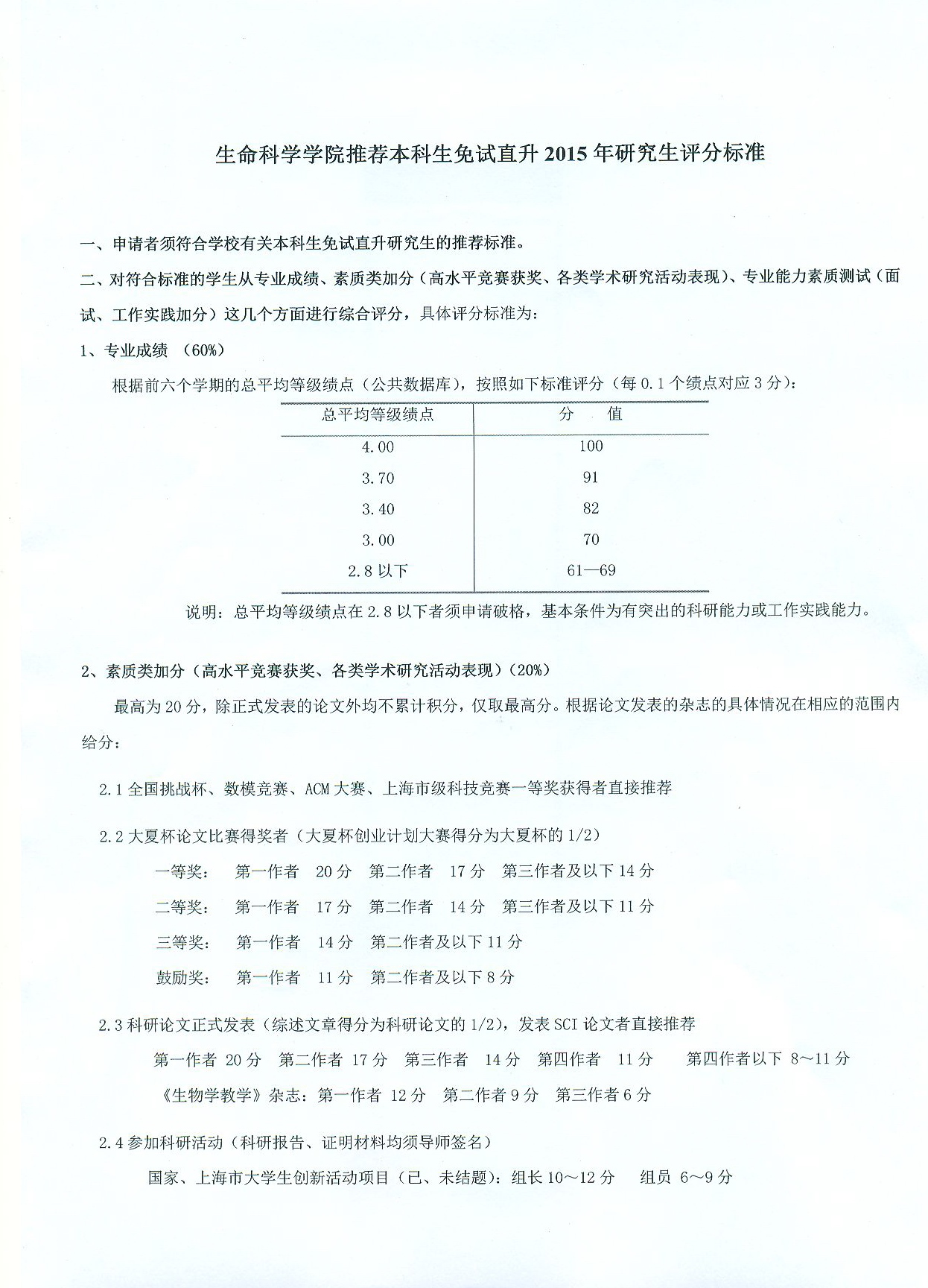 秀人网 推荐本科生免试直升2015年研究生评分标准