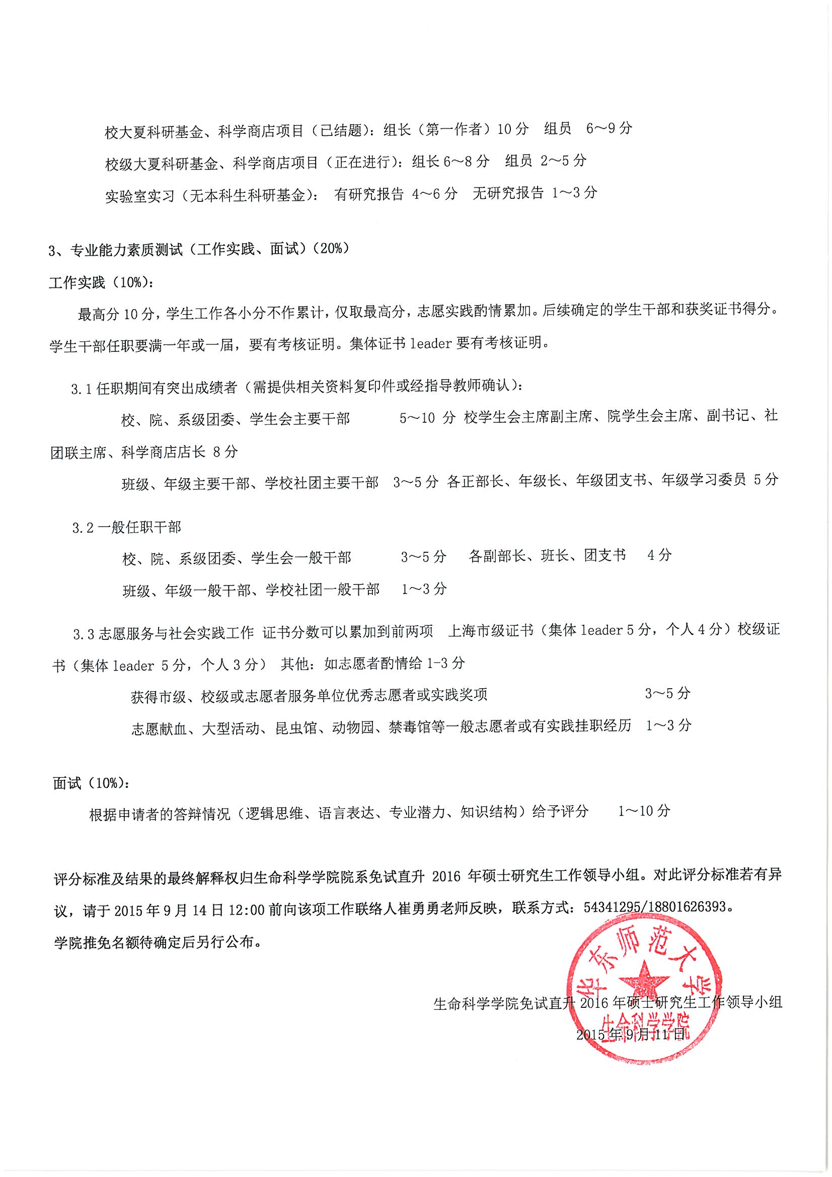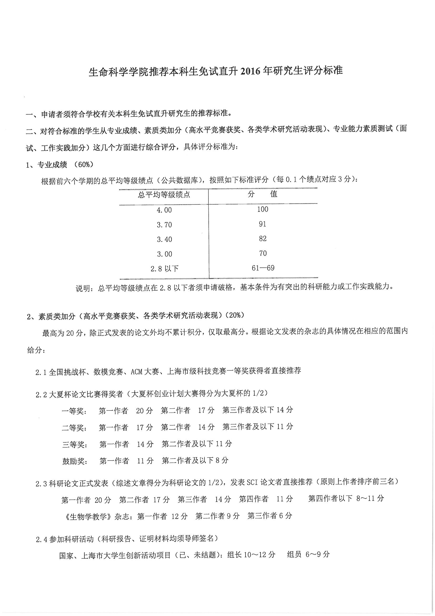 秀人网 推荐本科生免试直升2016年研究生评分标准