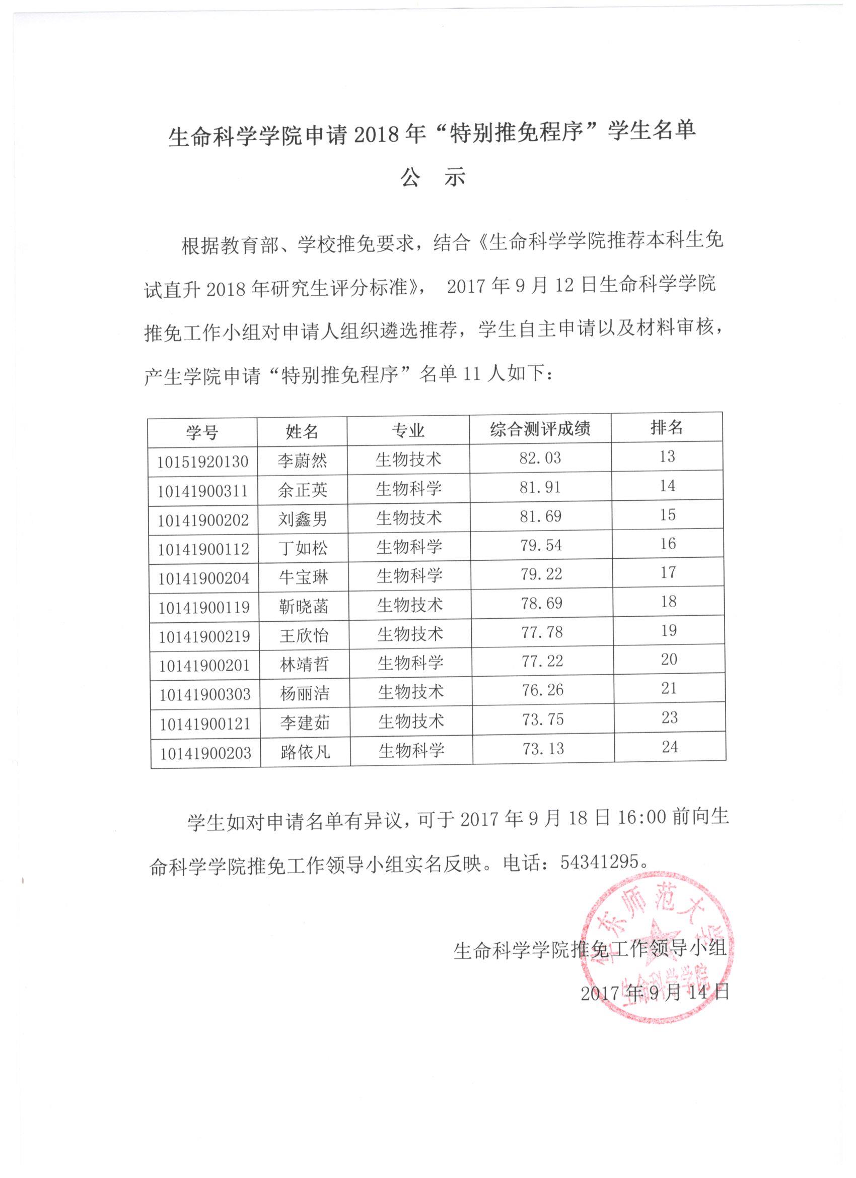 秀人网 2018年申请“特别推免程序”学生名单公示